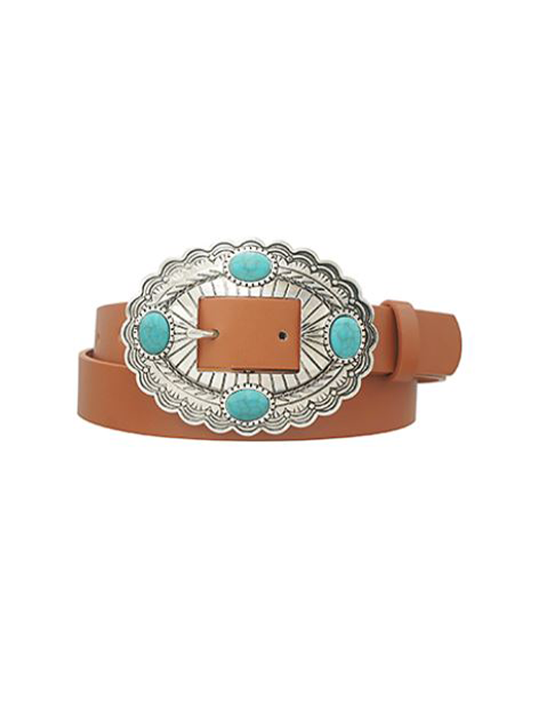 Stone Accent Concho Buckle Belt